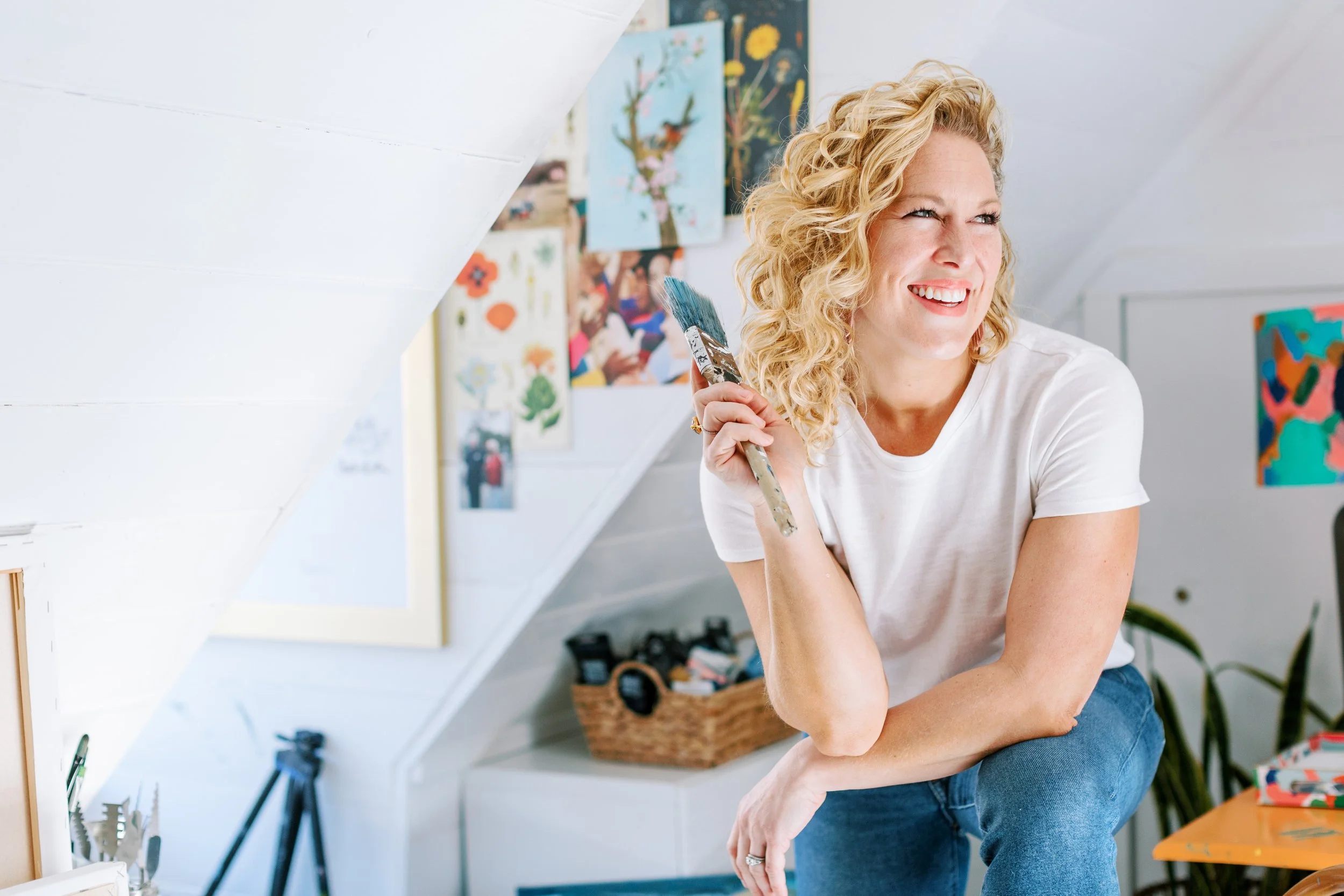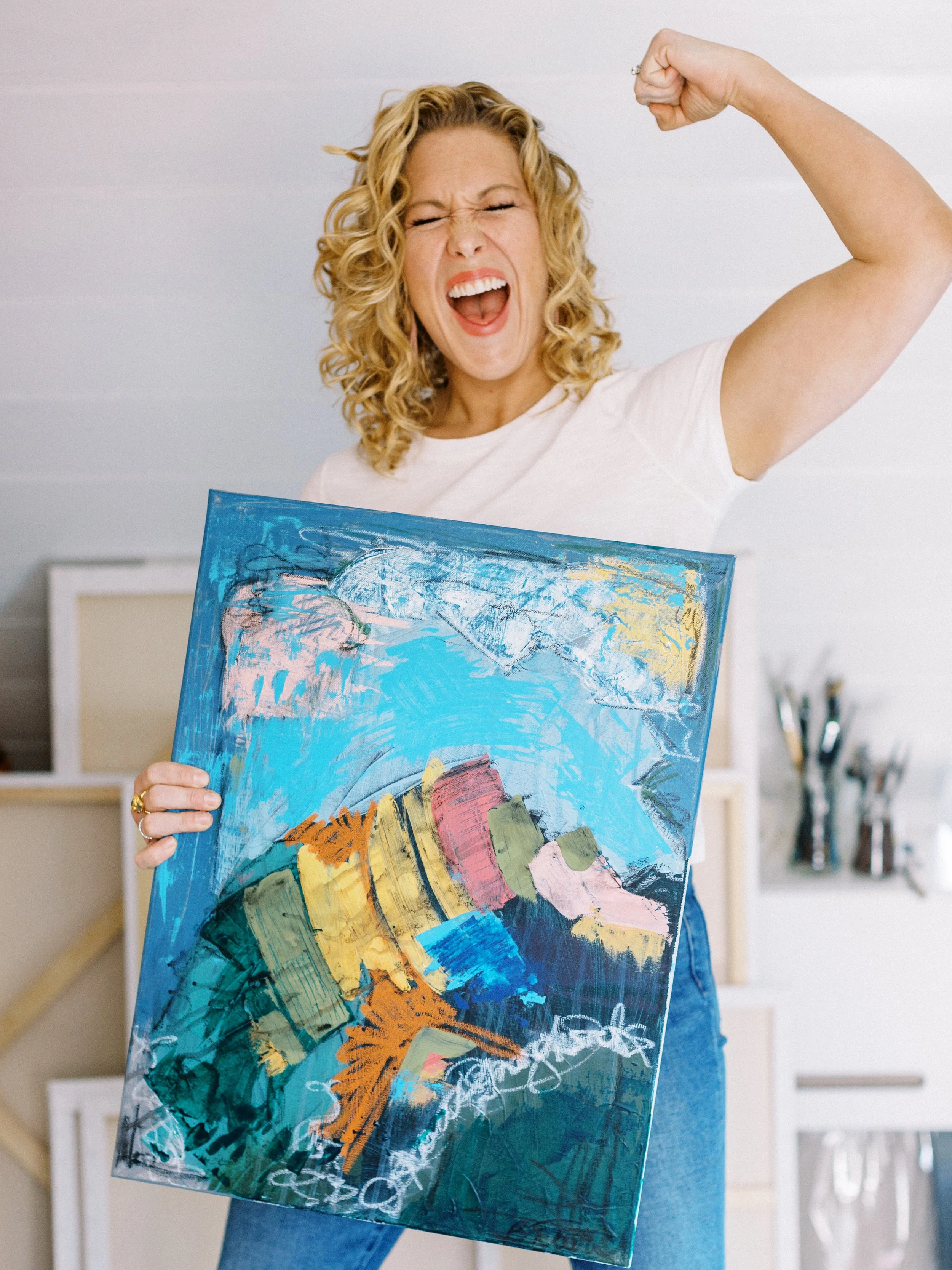Britt is a skilled colorist and interior designer who picked up a paintbrush for the first time during the pandemic. For years, she had been praying that the Lord would give her a platform to discuss hard topics like mental health, anxiety, and postpartum depression. In 2020, trapped at home, with nothing but time, He placed painting in her lap. Sitting on the floor with her daughter with a piece of old fabric as her first palette, God nudged her to explore something new and do it for His glory. It became a fresh medium for much-needed conversations. She creates beauty to adorn your walls as a reminder of your inner beauty and strength. Her work is steadily evolving as she explores various mediums and methods.